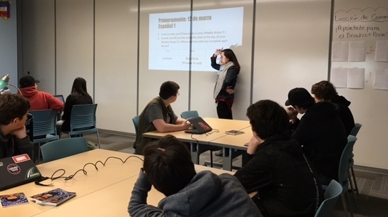 This does not mean that Lilia removes herself from students’ decision-making processes. Part of her role is to have conversations with individual learners about their progress and, based on their performance the week before, invite them to join her lessons as needed. She tells the story of how her Spanish I class came to appreciate and see for themselves the value of teacher-led lessons. “At the very beginning of the year, the 9th graders said, ‘Great! I can do this all by myself’ and opted to do only independent work, but within a week we all realized they needed my instruction. It’s definitely personalized in that the students know they have the freedom, but they can always come to me and ask for help or I can approach them.”